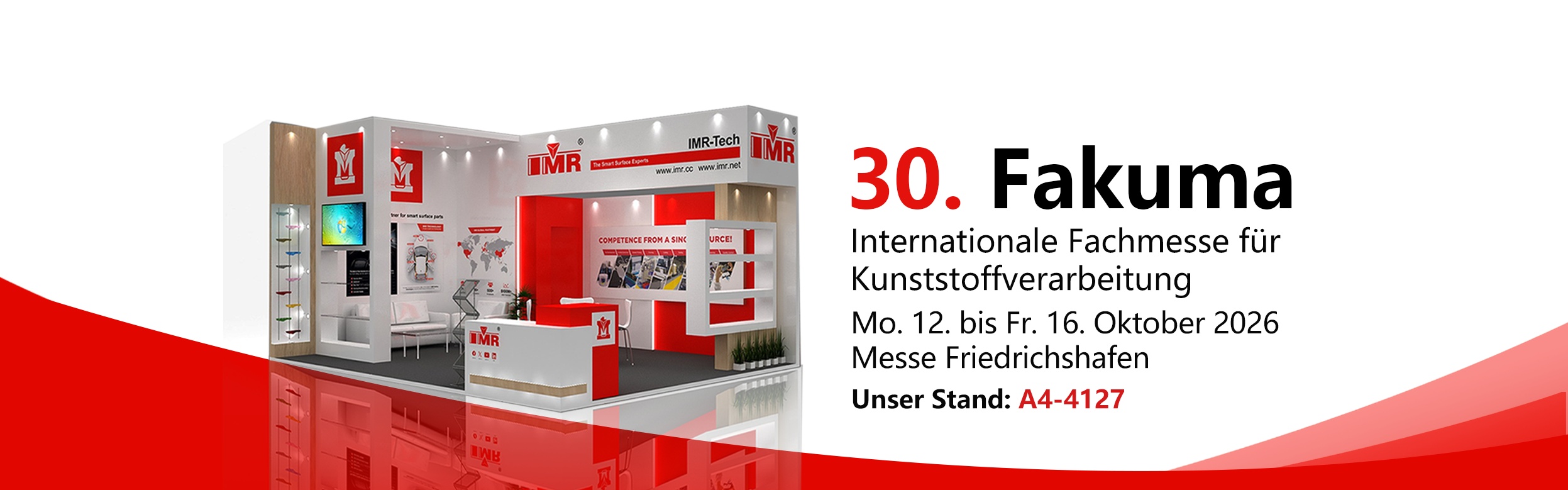 Die Fakuma findet vom 12. bis 16. Oktober 2026 im Messegelände Friedrichshafen in Deutschland statt. Als eine der größten Fachmessen für Kunststoffverarbeitung in Europa vereint sie Hersteller, Zulieferer und Kunden aus der ganzen Welt und präsentiert die neuesten Maschinen, Materialien und Technologien für die Kunststoffverarbeitung. IMR-Tech wird dort eine Reihe von zukunftsweisenden Technologien in den Mittelpunkt stellen, darunter fortschrittliche Spritzgussverfahren und intelligente Dekorlösungen. Unsere neueste Spritzgusstechnologie steigert nicht nur die Produktionseffizienz, sondern reduziert auch den Energieverbrauch erheblich und bietet unseren Kunden somit wettbewerbsfähigere Produktionslösungen.